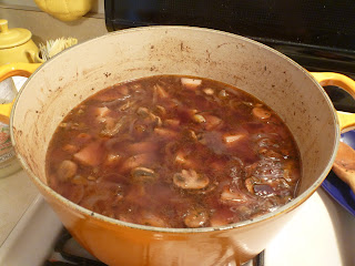 Here is the stew about halfway through the cooking process, looking fabulous: