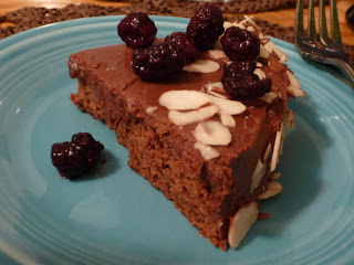 At last, dessert- the Reine de Saba (Chocolate Cake with Almonds). It was sinfully delicious- somewhat of a less-flour chocolate cake, but not a “flourless” chocolate cake. Similar to a lava cake, but not quite lava-ey. It was downright fabulous. And small enough that I hopefully didn’t get into too much trouble with the calories. I did, however, use whole wheat pastry flour in this cake- and not a single person could taste any difference. I feel like the texture was better with the pastry flour, too, rather than even a white flour. I will also admit, that rather than using rum, I substituted Chambord, a raspberry liqueur. So it essentially became a chocolate-raspberry-almond cake. Fabulous!