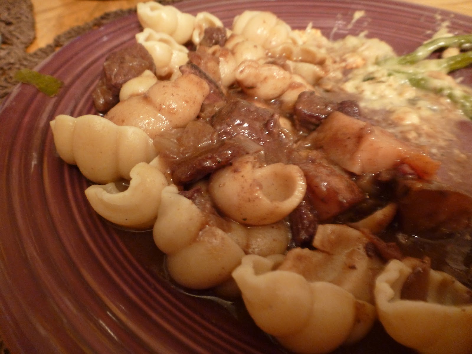 I learned, if nothing else, that you can take even the cheapest cut of meat, and stew it down for hours, and it WILL be delicious. Julia was a genius. This was even better than I had hoped it would be. Ultimately, I braised it in the oven for an extra hour, to reduce the liquid and concentrate the flavors further. Boy, was it worth it.