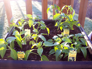 Laura, I've always heard that if you plant your sweet peppers too close to your hot peppers, they'll go hot through cross-pollination. If you're worried about your plants being too close, you could replant your sweet peppers in another container then separate the containers as much as possible. I love your little garden. Makes me want to go play in the dirt.