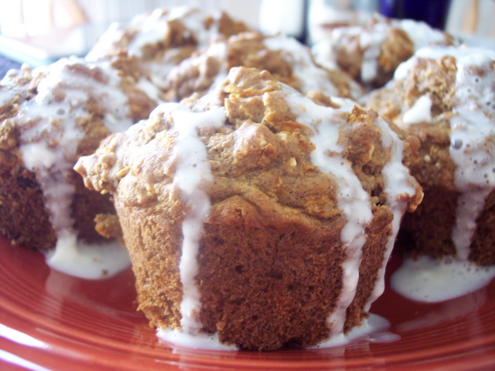 The recipe comes from the New York Times, and really, it turned out fabulous! I can’t wait to make these in the fall; all the cinnamon and nutmeg just smells like fall! The glaze was really easy, too- Just a tablespoon of non-fat cream cheese, a teaspoon of honey, and a small splash of milk; it drizzled nicely right over those warm muffins! They were so good, I ate two! Here’s the recipe:
