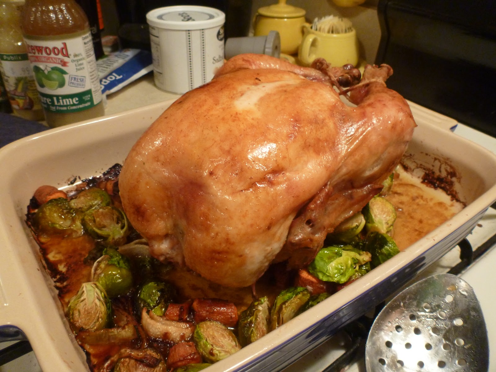 As far as the recipes themselves, my only change to the chicken was to decrease the amount of butter by about half (and it was still incredibly buttery- I can’t imagine it being possibly MORE buttery!!) We did not miss it in the slightest!! The braised brussels recipe took some modification, so that it was made in the same pan at the same time of the chicken. These two recipes are, therefore, made to be used together! 🙂
