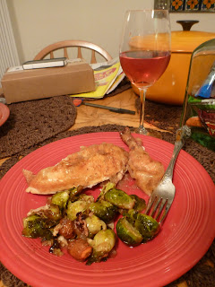 This next recipe I did modify, since I simply added them to the roasting pan with the chicken about 40 minutes through the chicken’s cooking time (gives them about 20 minutes to braise). The process was about the same, it just allowed me to a) use fewer dishes, and b) braise the brussels in the chicken drippings.