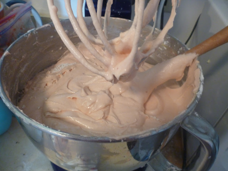 Here are some of the pretty layers! I cooled them, and then I added my secret ingredient: I brushed each layer with White Balsamic vinagar, and froze them for 2 days before the competition. I was inspired by some fancy restaurants we have eaten where they serve strawberries and balsamic for dessert- and it’s delicious.