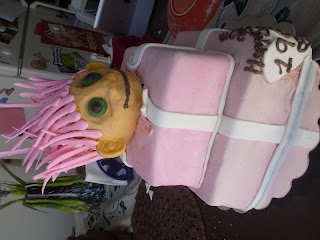 The theme of the competition was “1982: Birth of a Dream Come True,” which is kind of a difficult theme to work with. It represents the 30th anniversary of the Mifwife Center’s opening, so that’s the idea of the competition. Both cakes (tasting and decorated) were supposed to represent that theme. So for my cakes, I decided to decorate a cake that shows 2 birthday presents stacked on top of each other with a new baby girl popping out of the top (representing the midwife center), except the baby girl is a Troll Doll (representing the 1980’s). I also decided to step it up another notch and make every bite of my decorated cake edible, even the layers (the support for the cake and the layers didn’t have to be edible).