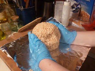 Here’s the shaping of the head for the troll doll out of Rice Krispie Treats: