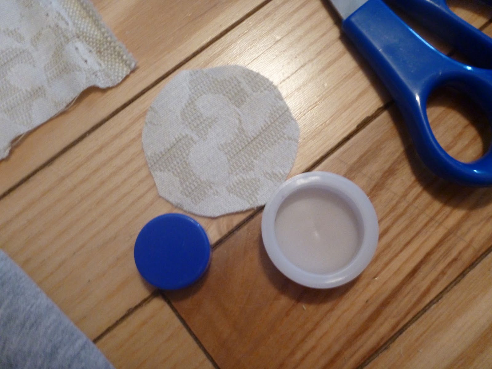 Once it’s cut out, you use the button maker to press the fabric over the button cover.