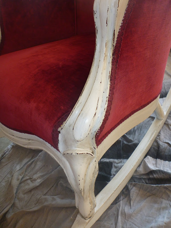 I bought the rocking chair, painted it white, and antiqued it to show off all of that gorgeous wood work.
