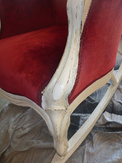 I don’t know if you recall the vanity chair in red velvet I painted? Here it is: