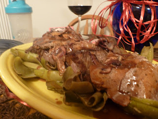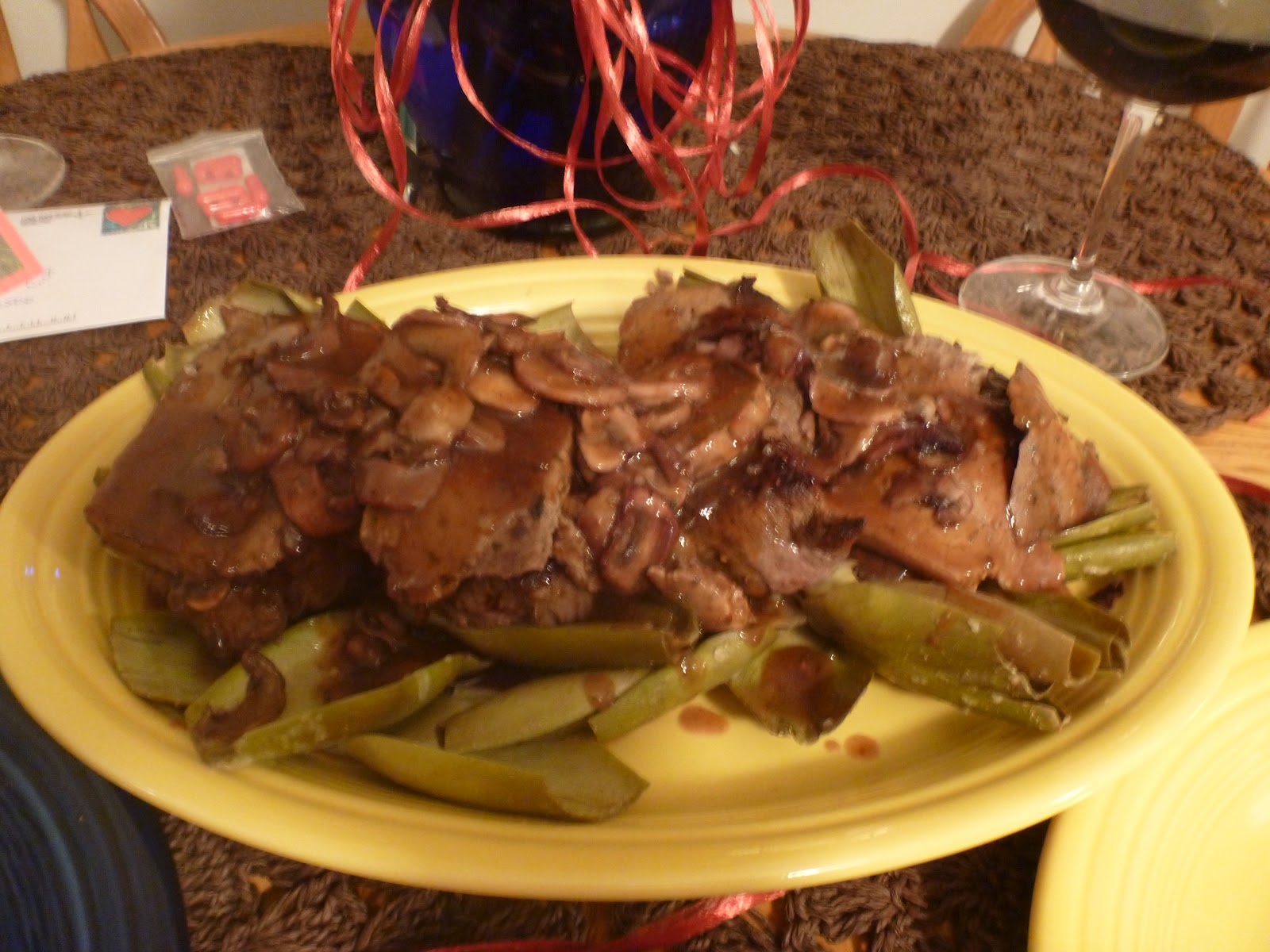 Tournedos Rossini (Steak with Artichokes, sauteed mushrooms, truffles, pate, and pan gravy):