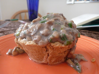 Hubby and I made Julia’s Poached Eggs en croute with a mushroom Bechamel sauce: